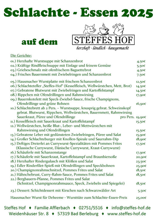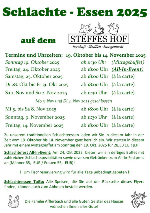 Wir bitten um Tischreservierung unter der 02751-5516 oder per Mail info@steffes-hof.de entgegen.
